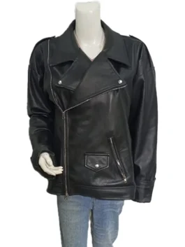 Hailey Bieber Black Oversized Motorcycle Jacket