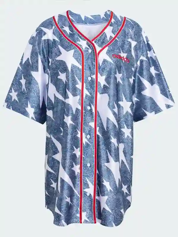 Adidas Denim Graphic Baseball Jersey | Premium Sports Inspired Outfit