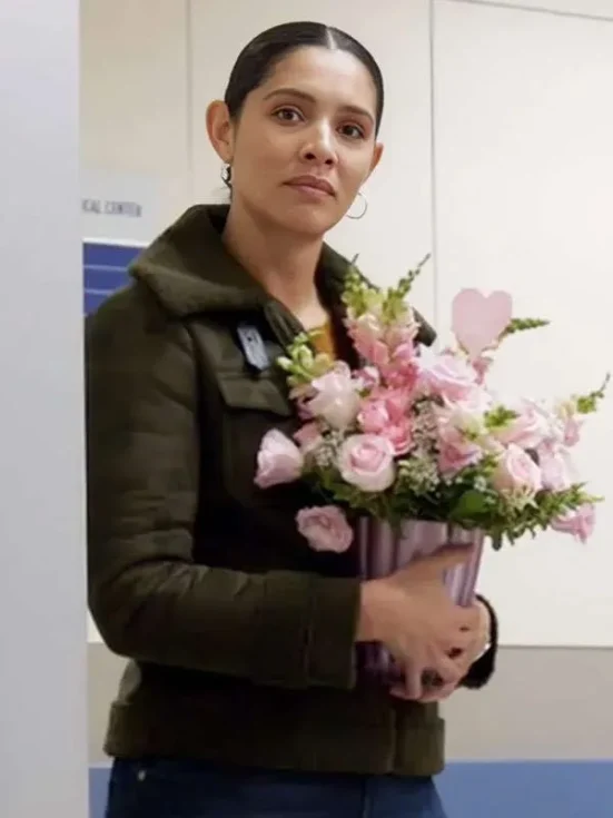Chicago Fire S14 Miranda Rae Mayo Jacket with Shearling Collar – Command the Elements with Heroic Sophistication