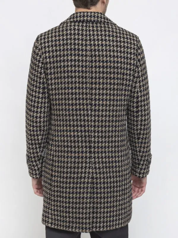 Front view of Daniel Ings Freddy Horniman check coat. This double-breasted coat is the Freddy Horniman brown houndstooth coat.