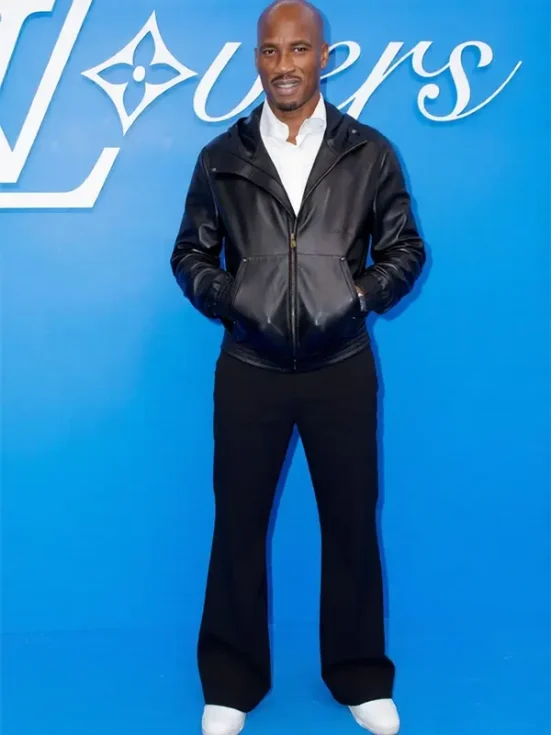 The Pharrell Williams & Chelsea Legend Connection This jacket is more than just a piece of leather; it is a bridge between the world of pro sports and high-end fashion. Didier Drogba, the ultimate Chelsea legend, made headlines when he wore this sleek bomber at the Louis Vuitton show curated by Pharrell Williams.