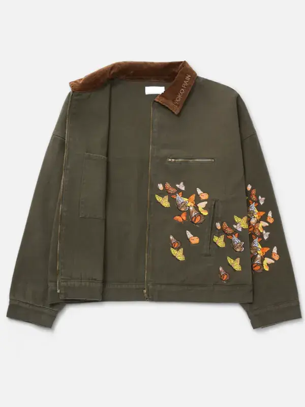 Front view of the Green Butterfly Work Jacket featuring large functional pockets.