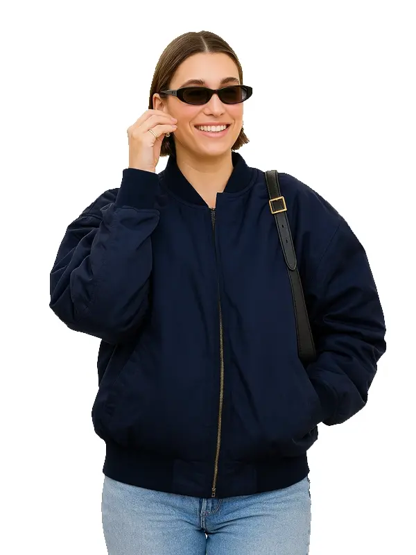 Hailey Bieber Navy Blue Bomber Jacket – Timeless Style & Ultimate Comfort