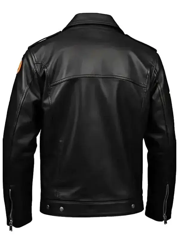 Buy the Halloween Black Trucker Leather Jacket for a Bold Festive Edge