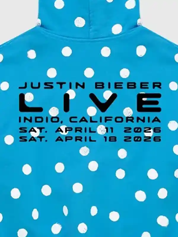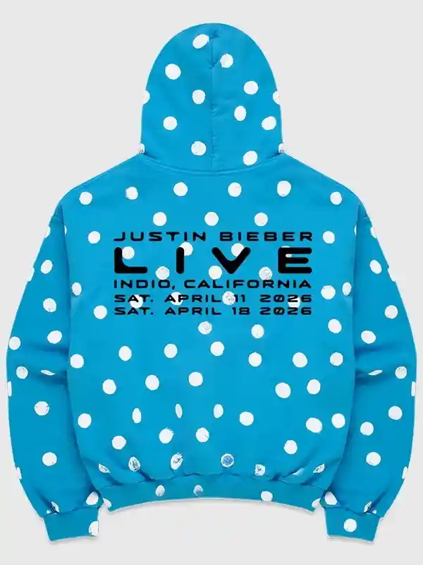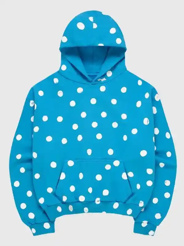 Justin Bieber Skylrk White Spot Hoodie in blue with white spots, hooded design, and casual streetwear appeal