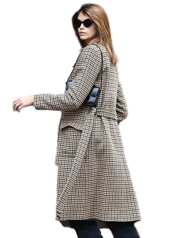 Kaia Gerber Vintage Long Belt Plaid Coat: Timeless Fashion with Modern Flair