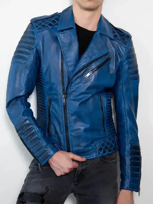 Define Your Modern Horizon with the Mens Blue Leather Motorcycle Jacket | Vegan Leather