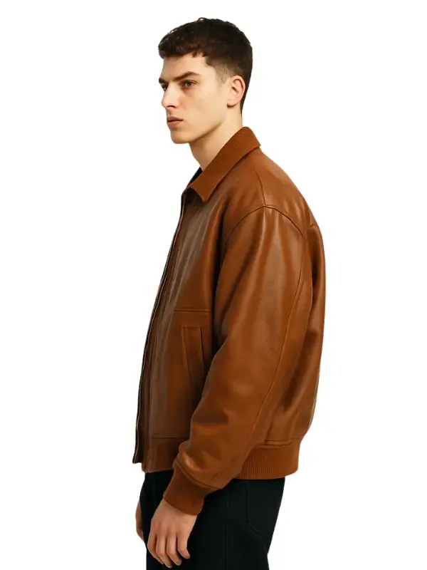 Shop the Brown Leather Bomber Jacket for Classic Everyday Style