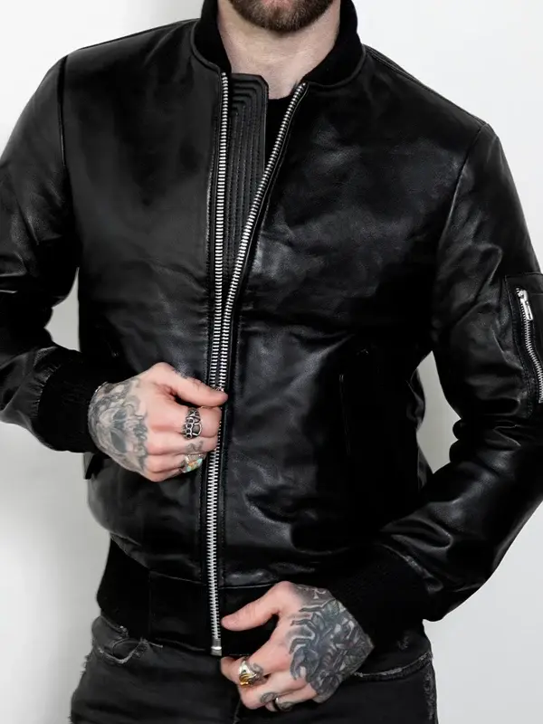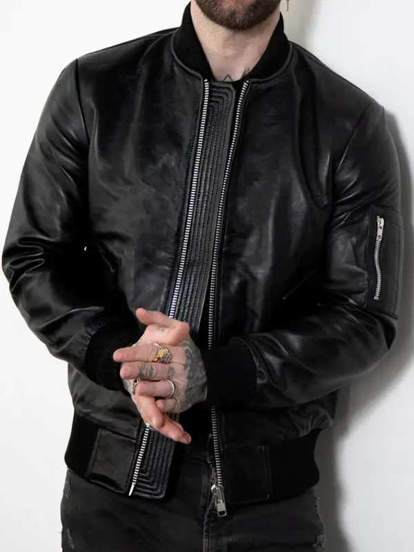 Mens Premium Black Leather Bomber Jacket – Achieve Sleek Authority with Elite Wardrobe Mastery