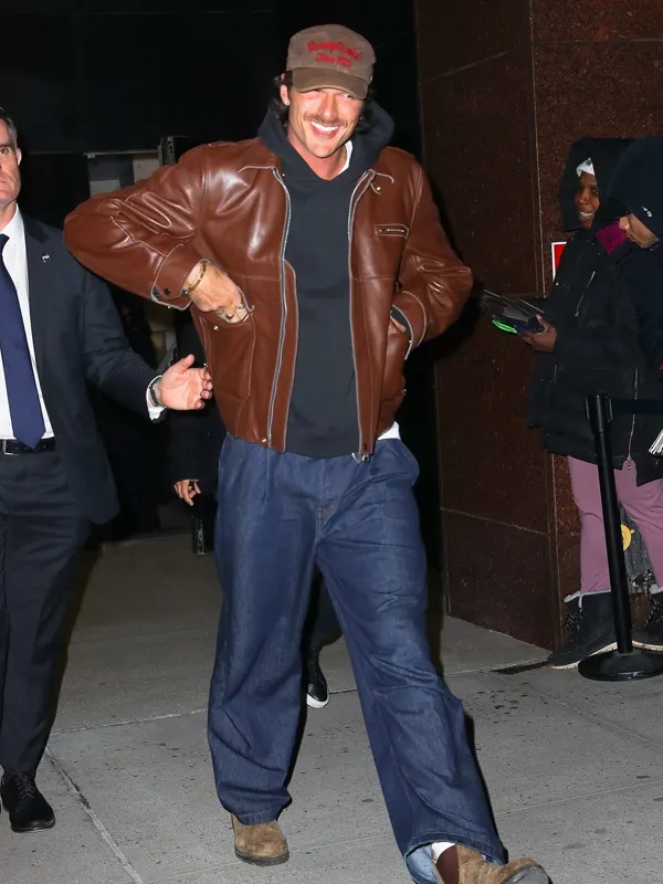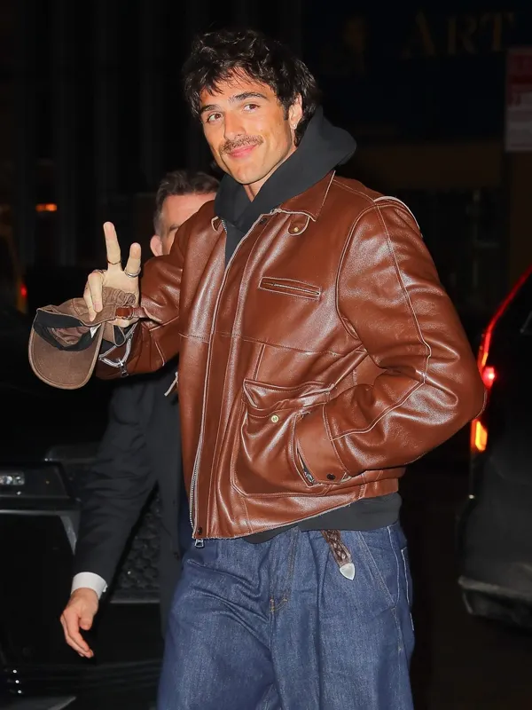 Jacob Elordi New York Brown Leather Jacket with Classic Utility Style