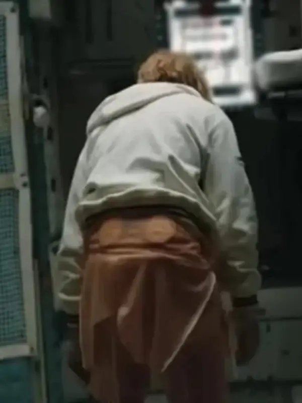 Project Hail Mary Ryan Gosling white zip hoodie with rainbow stripe detail and hooded style