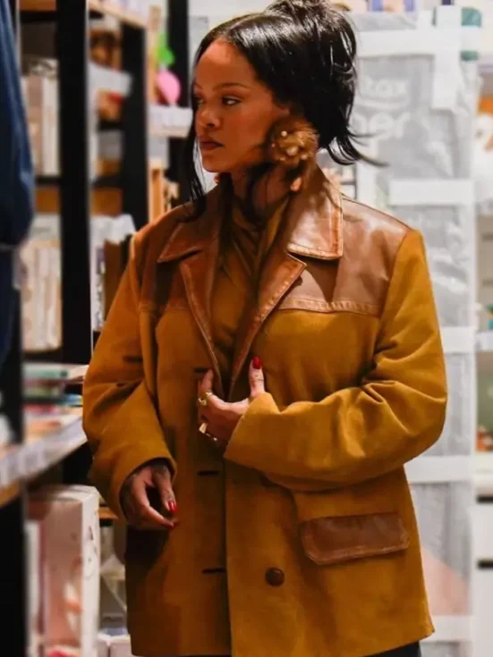The Rihanna Miu Miu Mustard Suede Jacket is inspired by Rihanna’s standout fashion look in Miu Miu styling. Rihanna is known for turning simple outerwear into statement fashion, and this jacket reflects that same bold but effortless style. Her street and luxury looks often set trends, which is why pieces linked to her fashion quickly gain attention.