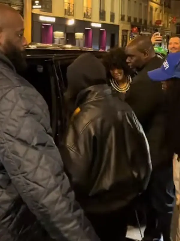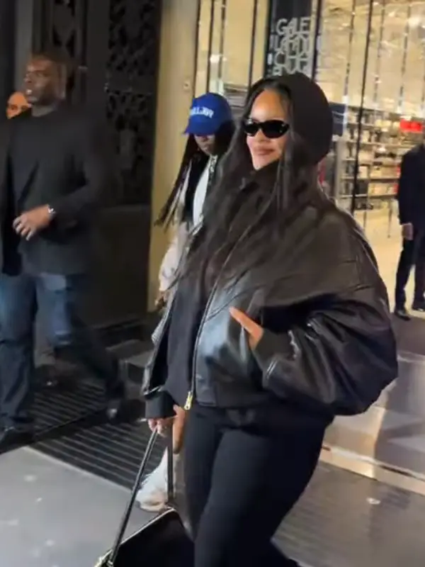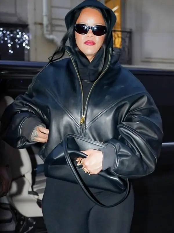 Rihanna Paris 2026 Black Oversized Leather Jacket with Bold Street Style