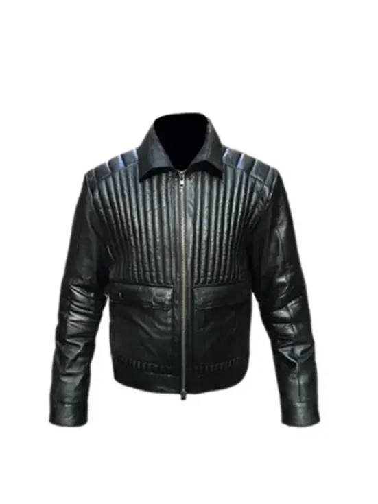 A modern black jacket with subtle rebel and galactic design elements from the Star Wars films.