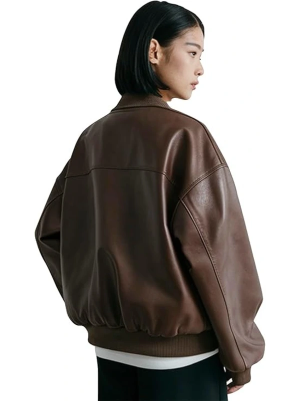 Womens Oversized Real Lambskin Leather Jackets Zip Up Trendy Bomber Motorcycle Jacket
