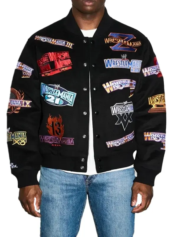 Celebrate Wrestling History with the WWE WrestleMania 1-21 Black Jacket